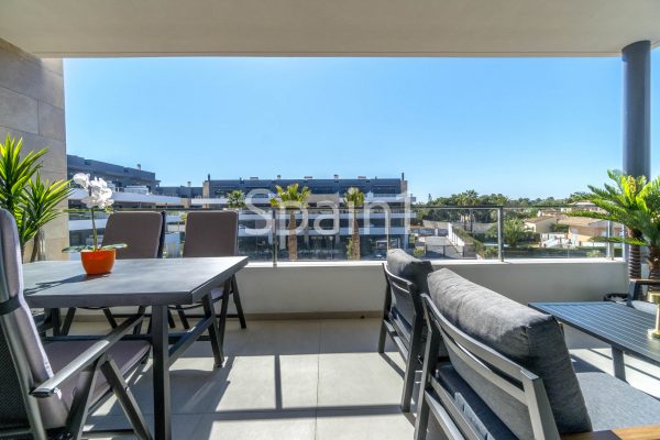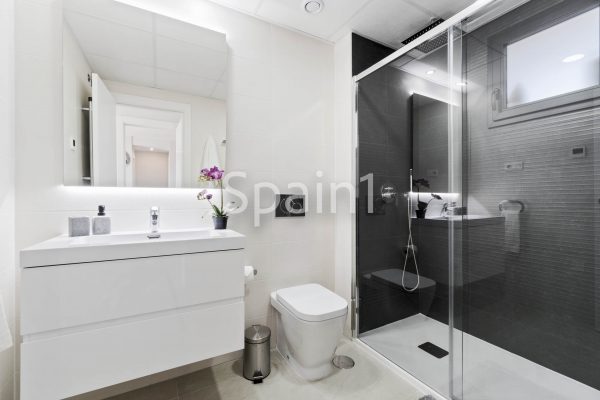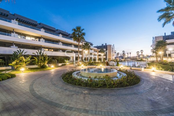 Here we have an exclusive apartment in Playa Flamenca, just 500 meters from the beach. Within walking distance of the sea, supermarket, restaurants and shopping center. The apartment is located on the 2nd floor (of 4) and with the park in front. It faces southwest, which means lots of sun and sunset. Here you have 2 good size bedrooms and 2 bathrooms with underfloor heating.